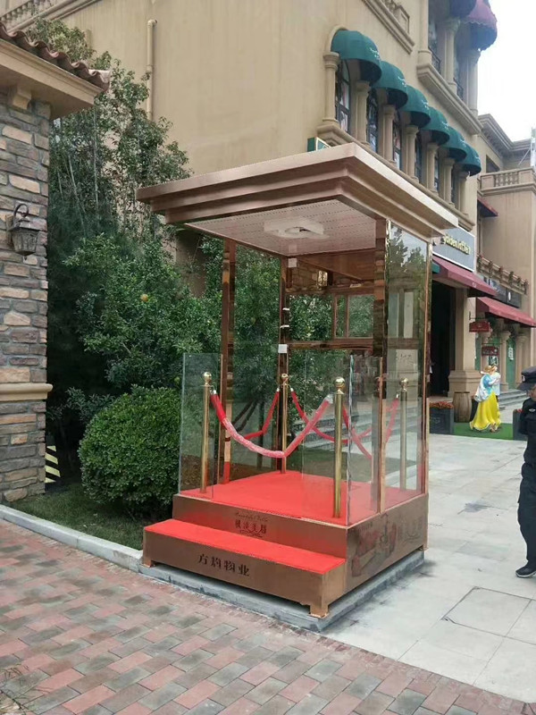 值班站臺(tái)的尺寸一般有:1.2x1.5x2.6米、1.5x2.5x2.06米、1.5x2.0x2.6米等,其余特殊尺寸可根據(jù)客戶需要來定制,材料一般有彩鋼、鋼結(jié)構(gòu)、氟碳噴漆、金屬雕花板材料的,各個(gè)款式設(shè)計(jì)不同,給你帶來不同的體驗(yàn);